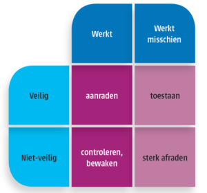 8.4 House of Ichō zal met name Content die in strijd is met het principe van Integrative Medicine (IM) verwijderen van de Community. Bij de beoordeling van Content baseert House of Ichō zich op het ethisch raamwerk voor IM, zoals hieronder is weergegeven. Dit ethisch raamwerk is gebaseerd op twee criteria: veiligheid en effectiviteit. Content waaruit een medisch advies volgt dat (i) noch effectief noch veilig is of (ii) niet veilig is, maar wel effectief, wordt door House of Ichō verwijderd.